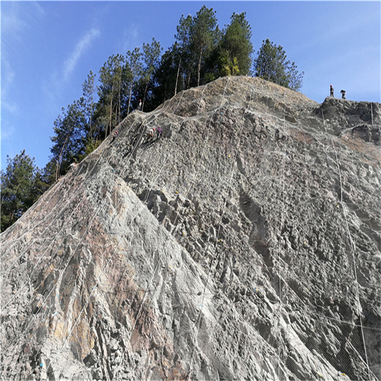 对山坡上的一些落石停止防护,它主要有热镀锌钢丝绳编织有卡扣衔接,然后配合锚杆固定在上坡的稳定中央,这样就在整个山坡的外表构成一层稳定的维护用网,这样就能有效的避免山顶一些碎石的滚落,各种规格的边坡防护网,主要产品有:主动防护网、被动防护网、环形网等产品。