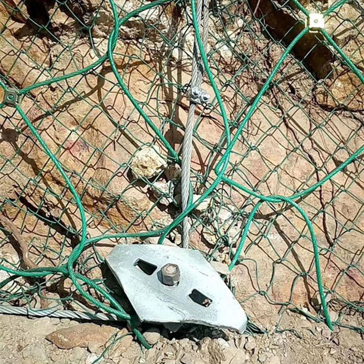 主动防护网通过钢丝绳锚或钢丝绳锚和支撑绳在边坡上掩盖有潜在地质危害的金属柔性网,实现了加固或限制岩崩运转范围的防护网。主要特色有:钢丝绳网、钢丝网、高强度钢丝格栅。
