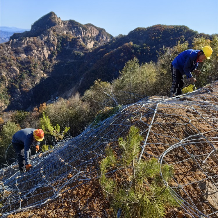 边坡防护网是一种落石防护用网,对坡面的生态进行有效的改善,从而也抑制了坡面进一步遭到破坏,进而形成良性循环。边坡防护网能够保护边坡的主要原因是边坡防护网可以在雨水冲刷时抓住水土,降低雨水的流速,减少土的松动,固定水土。而达到这一效果需要边坡防护网具有一定的柔性。