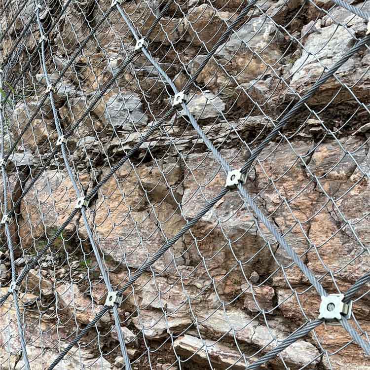 钢丝格栅和钢丝绳网配合应用时,一股情况下:内层是用高强度钢丝格栅网铺设而成,而外层则是用钢丝绳网再次加固