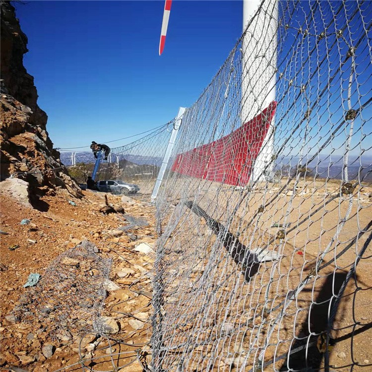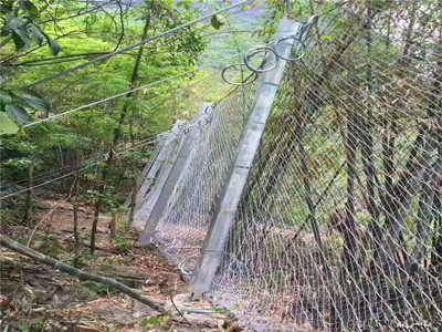 被动防护系统是以钢丝绳网为主的栅栏式柔性拦石网。设置于斜坡上相应位置,用于阻挡、拦截斜坡面的滚落石以避免其破坏保护的对象——铁路、公路、建筑物等。