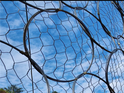 边坡防护网(ROCCO环形网)采用热镀锌工艺,在落石冲击过程中能发生自身几何形态改变、具有突出柔性特征的ROCCO环形网来取代钢丝绳网,以此为基础的拦石网能够实现3000kJ以上的落石阻拦,并能进一步简化结构形式(如支撑绳和减压环的配置)、方便局部受损后的维护修复,ROCCO环形网已经成为一种替代钢丝绳网系统的新型拦石网(RXI型),实现了SNS被动防护系统的新换代和升级。