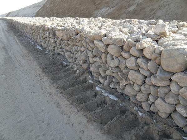 镀锌石笼网是工程技术人员为了实现工程与生态环境相结合而研究出来的一种新型防护结构,高强度镀锌铁丝编制的不同大小的矩形笼子,装满石块应用到景观工程和水利工程的岸坡防护后,它的柔性结构特点可人为设计搭建成和周围围环境相结合的形象景观,例如石笼阶梯,石笼墙等,随着越来越重视生态自然绿色环境,镀锌石笼网的渗透性特点,既可起到净化水的作用,石笼内石块间的缝隙也可人为和自然因素的双重作用下充填泥土和自然草本种子,经过洒水和天然雨水、河水的滋润,植物种子逐渐在石块之间的泥土中生根发芽,茁壮生长,根系牢牢固定石块和泥土。如此即可以对边坡实现防护和绿化的目的,改善生态、保持水土的效果也十分显著。