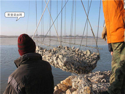 在工程施工过程中,网袋内填充石块 ,构成结构牢固 ,石块与石块之间有缝隙,这样渗透性能强,石笼网袋用于河槽、河堤等防止冲刷,以及各种紧急施工工程当中。在编织网袋过程中,为了方便结口,重型六角网内嵌入粗铁丝。 石笼网袋,生产过程中,所有环节都经过了严格的标准测试。所有选六角网的编织铁丝的镀锌量,捆绑丝符合 ASTM A975-97 标准,即拉力强度不得低于75000psi(515Mpa)—ASTM A641/A641M-03 。