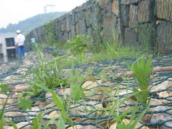 绿格网又称“格宾网”、“石笼网”,由各种网孔规格的绿格网片按照ASTMA975-97规范组装而成,工程现成填充石料组装形成柔性的、透水的、整体的支挡结构,常用于生态防护工程。该结构采用镀锌钢丝或者10%锌铝合金钢丝经过双线绞合编织而成的,其双线绞合部分的长度不能低于45mm,以保证绞合部分的不易腐性能不被破坏。如果环境不好,污染严重,可以再钢丝的表面涂塑(包PVC)增强钢丝的不易腐蚀性能。
