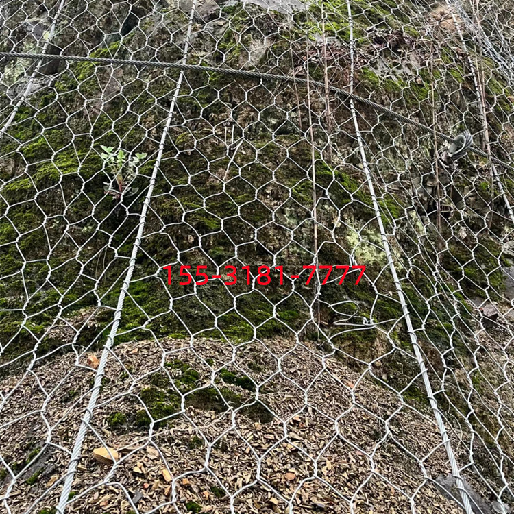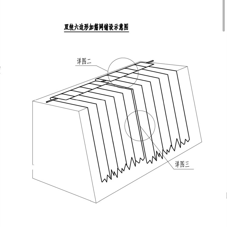 在坡面均匀布置一系统锚杆,相邻锚杆的水平及竖向间距一般为3m,此处坡面凹凸不平,锚杆布置时可适量调整,尽量将锚杆布置于坡面低凹处,在坡顶的一排锚杆上安装上支撑钢丝绳,用于固定Steelgrid高强加筋网;坡顶处,网面折叠反包并固定在上支撑绳上,网面在自重作用下自然垂挂于坡面;在坡面其它锚杆上按照设计的形式穿插并张拉支撑绳,用于将网面紧压在坡面上,以获得稳定的加固性能。