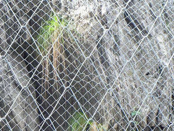 铁丝格栅:格栅应掩盖全部防护区域,网块间搭接宽度不应小于5cm,网块间及网块与支撑绳间需用扎丝扎结,钢丝绳网:每相邻四根钢丝绳锚杆构成的一个矩形挂网单元内铺设一张钢丝绳网,网块边沿与支撑绳间缝合张拉衔接。
