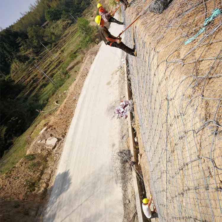植物根系的固土效果与坡面防护体系结为一体,从而抑止坡面损坏和水土流失,反过来又维护了地貌和坡面植被,完成最佳的边坡防护和环境维护企图,自动防护网简单类型:边缘(或上沿)钢丝绳锚杆+支撑绳+缝合绳(D0/08/300钢绳网+上下沿锚固+上下沿(或横向)支撑绳普通类型。