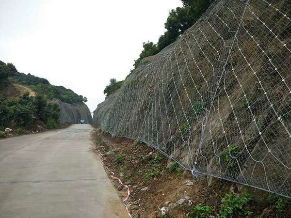 再一种就是被动防护网了, 被动边坡防护网是一种装置在山坡脚下的一种高强度抗冲击力的钢丝绳网,被动防护网也分为菱形网和环形网,其中环形被动防护网的抗冲击力十分大可到达3000千克。