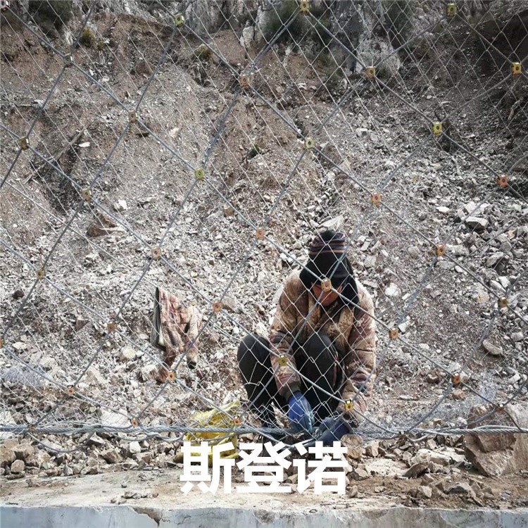 主动防护网有内外两层网,内层格栅网由2.2mm热镀锌丝,外层钢丝绳网采用8mm的钢丝绳编制,并在结点处用专用“十字扣”固定而成,为防护网的主要构件之一,在山体边坡上通过格栅网与钢丝绳网的覆盖来实现边坡的加固,其开放特征可以实现对坡面天然植被和植被生长条件的保护,实现环境保护与灾害治理的有效结合。