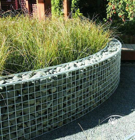 石笼网是一种用石头或其他常用土质材料填充的金属笼或箱,常用作挡土墙或其他户外墙体。通常以不锈钢、镀锌或粉末涂覆钢丝为原料,然后与螺旋粘接剂或圆形紧固件连接,形成一个矩形。它不仅可用作石墙,也可用作水利工程。例如,保护河岸地基不受水土侵蚀。你是否注意到花园建筑中也有一种网笼,这种网笼就叫做景观石笼网。